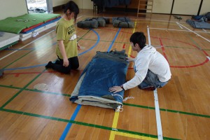 内容はテントの状態のランク付け、ポールの状態、内部の清掃、備品の数のチェックを主に行いました
