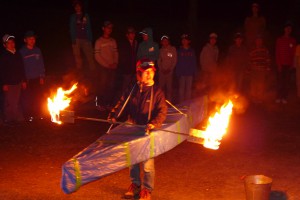 歌に出し物にとキャンプファイヤーは大盛り上がりしました。今回は指導者だけでなく、班員による出し物もありました。